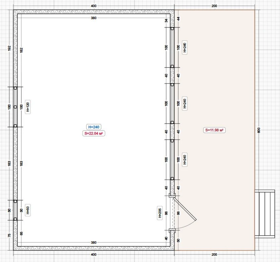 Размер: 6.0x4.0м. с верандой 6.0х2.0м. = 36кв.м.