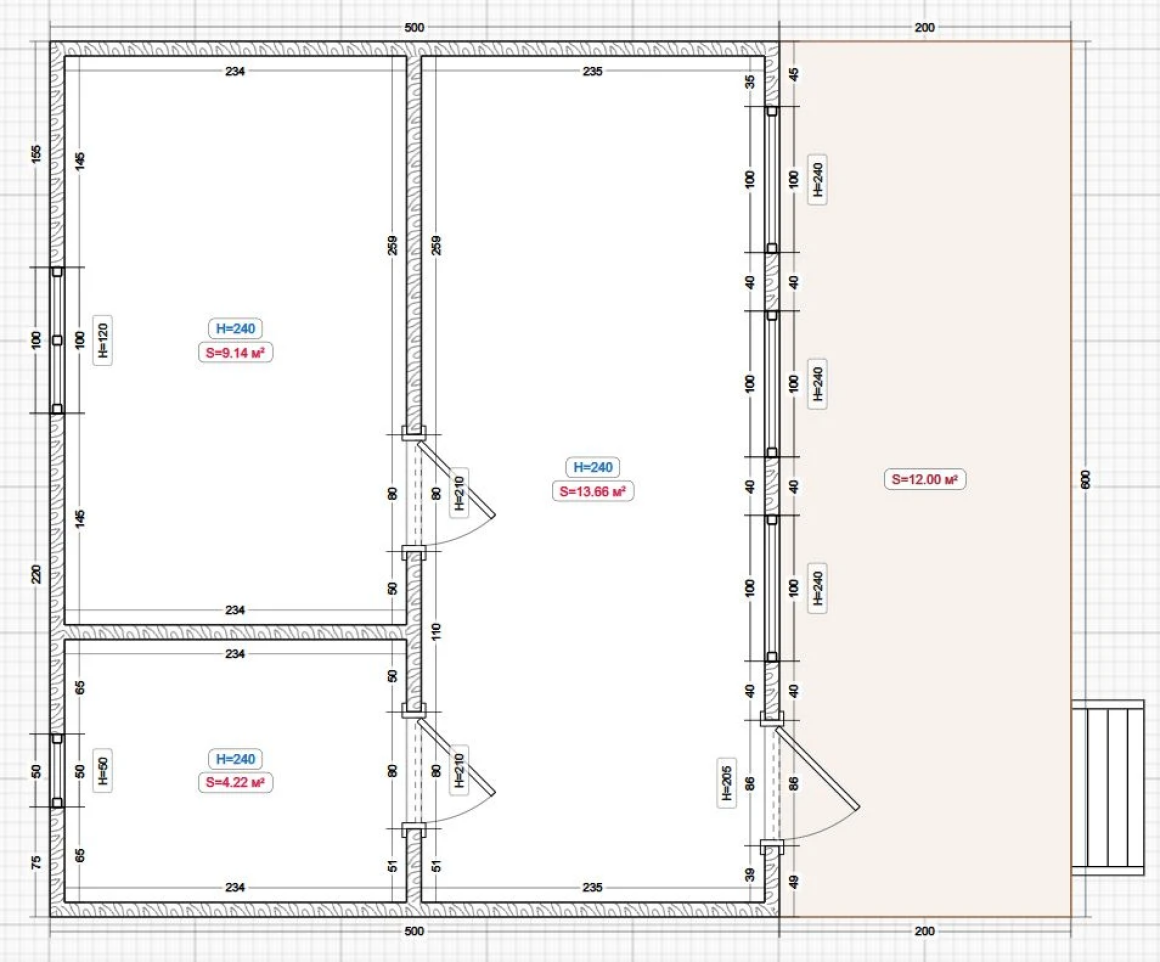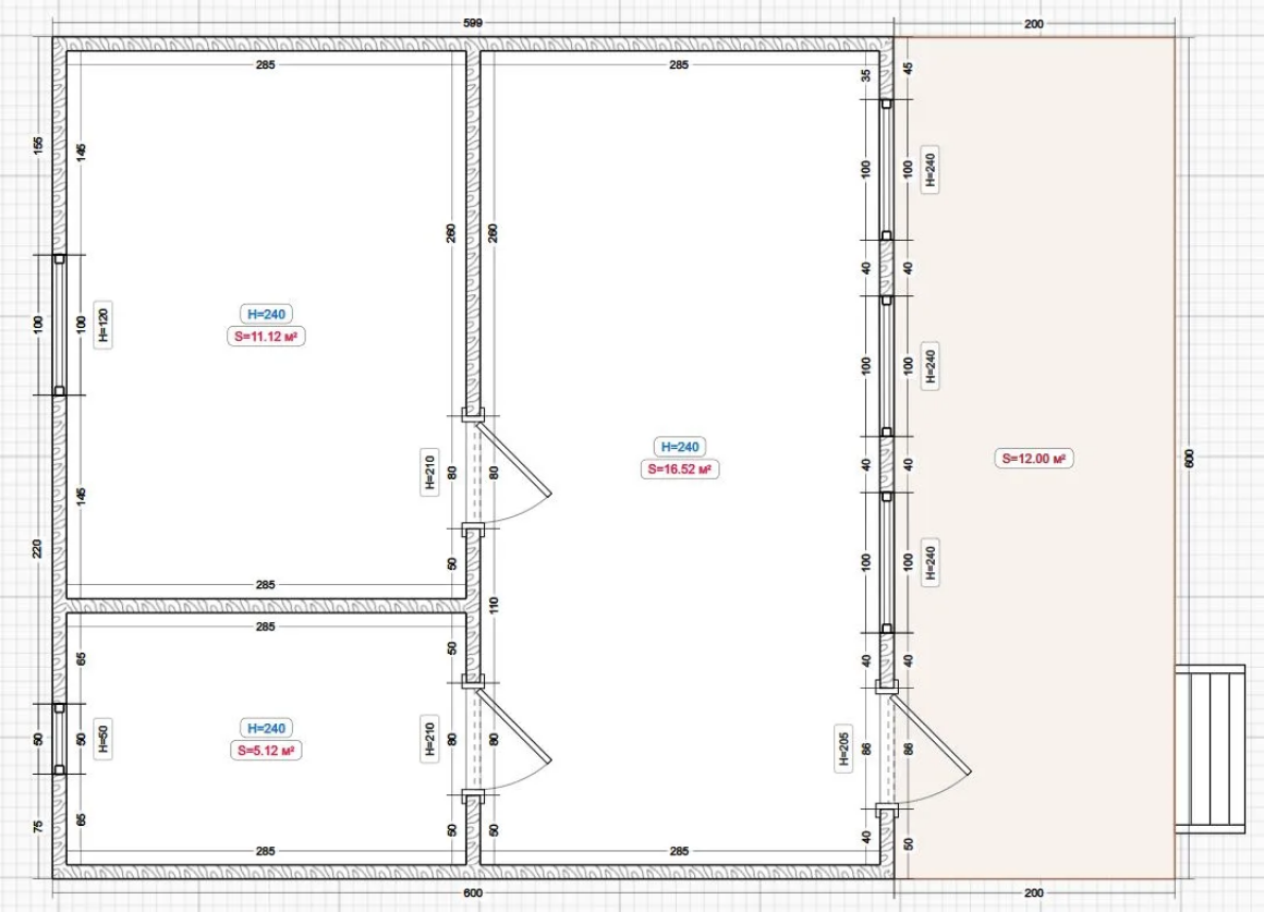 Размер: 6.0x5.0м. с верандой 6.0х2.0м. = 42кв.м.